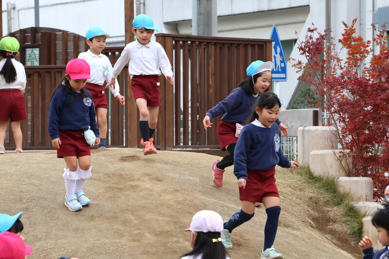 新しくなった園庭は、広くなるとともに隠れる場所が増えて、「かくれんぼ」や「ドロケイ」をするには、ちょうどイイ感じ。