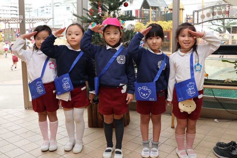 きのう、お子さまたちがサンタさんへお手紙を書いていることをご紹介しました。実は、サンタさんのほかにも、クラスのお友だちや先生などにもお手紙を書いていて、きょうはそのお手紙の「配達出陣式」がおこなわれました。