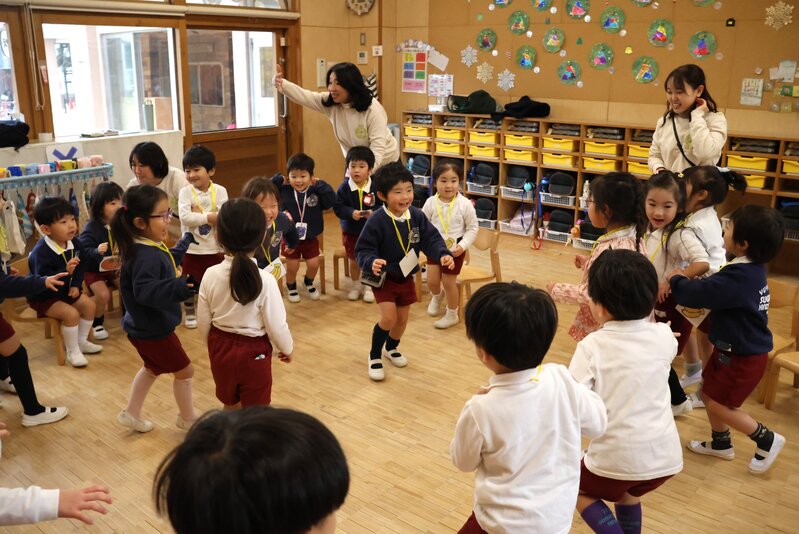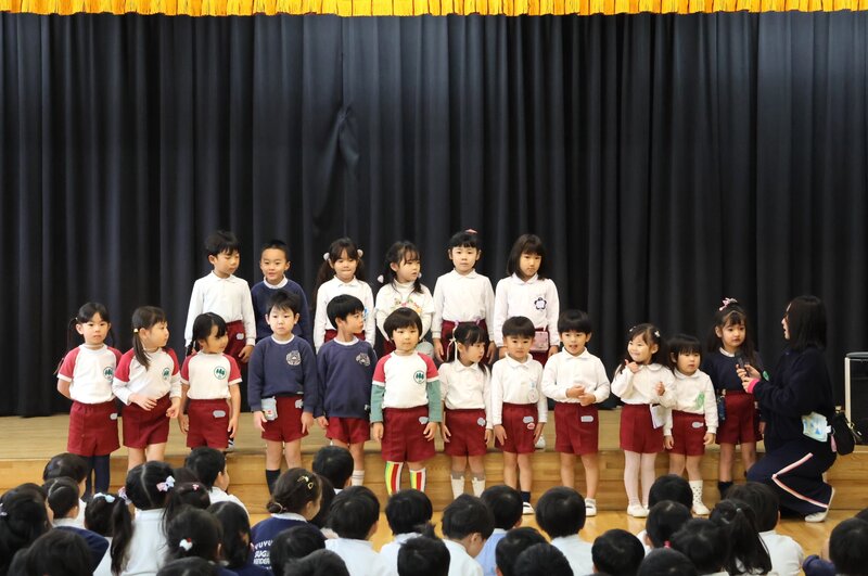 年少さんの中には、きょうの「お誕生日会」に備えて、おうちで自主的にお名前を言う練習をしたお子さまもいたそうです。そのお話を聞いて、「成長」というのは、こうした小さな努力の積み重ねなのだという思いを新たにしました。