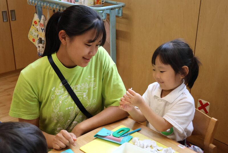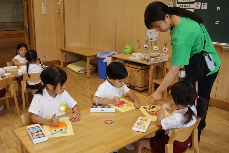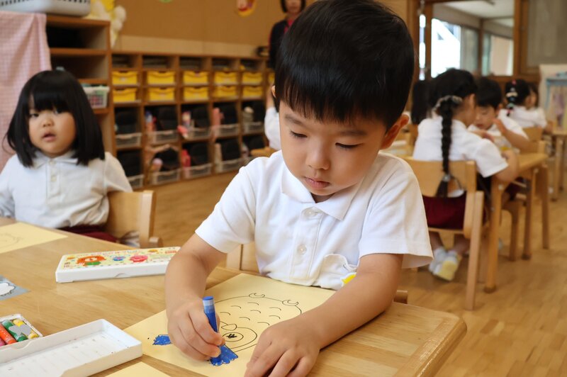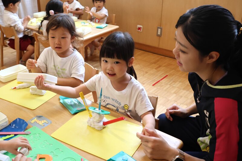 きょうの「製作」では、「折り紙」のほかに「粘土」や「クレヨン」を使ったクラスもありました。
