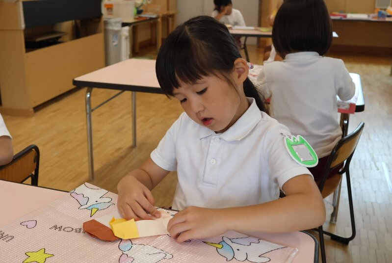 お部屋をみにいきますと、「うさぎ組」さんは折り紙をしたり……、