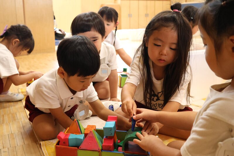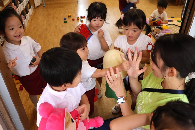 担任からは、お子さまたちの生活のようすが細かく伝えられることでしょう。9月から参加されたお子さまたちも、すでに「いちご組」さんで約1か月半を過ごしました。