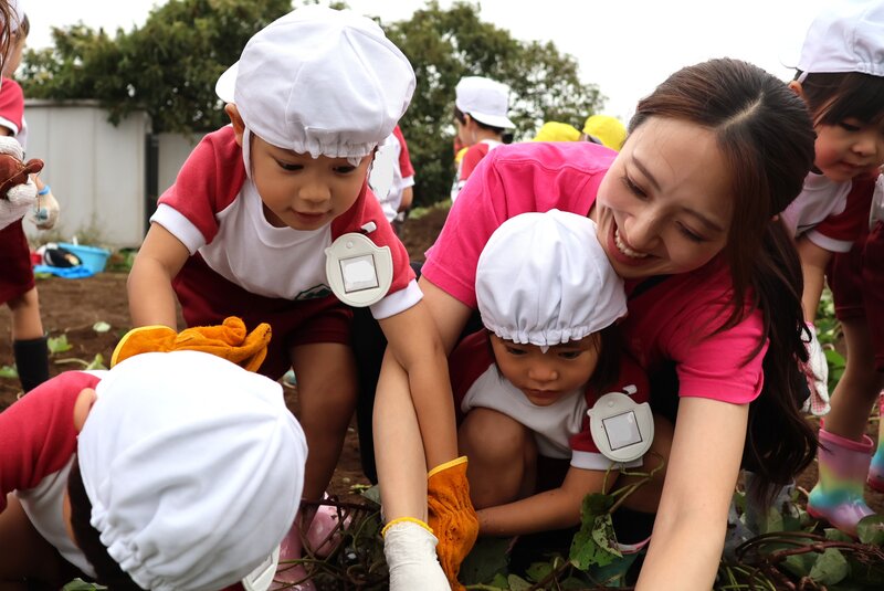 すると、当初の予感どおりスタートから積極的に畑に飛び込む年少さんたち。