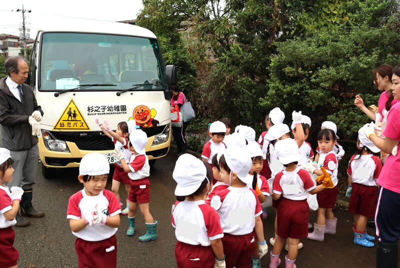 でも、雨雲レーダーをみた限りでは、雨は9時過ぎには止んで、その後は曇り空になる感じでしたから、スタッフには「行く」という選択肢しかありませんでした。というわけで、行ってまいりました、年少さんの「お芋ほり」に。では、さっそくそのもようをお伝えしてまいりましょう。