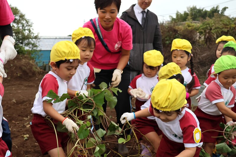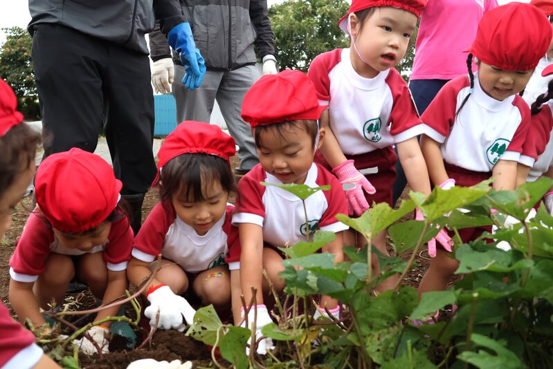 さあ、はじまった。「令和7年度お芋ほり年少の部」の開幕です。
