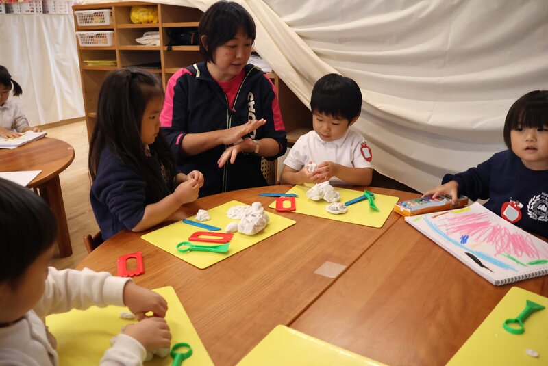 ところで、写真をみますとお子さまたちは「粘土」や「お絵かき」をしている真っ最中なのでありますが、「メイン」はこちらではなく……、