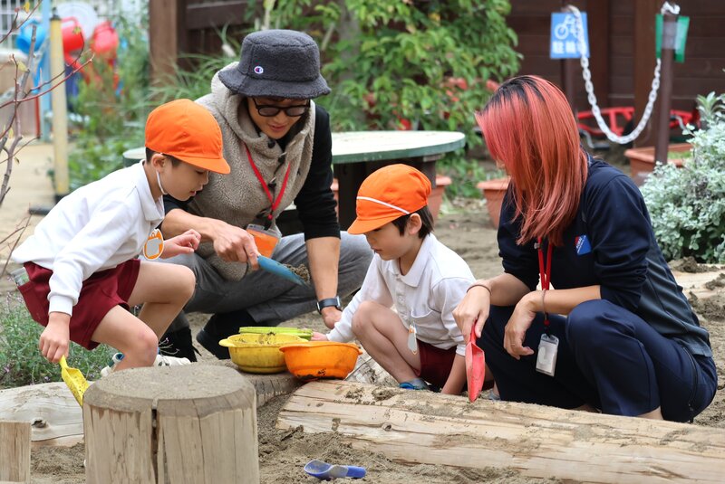 お子さまたちが主導権を握りつつ、「なわとび」「お砂場」「三輪車」……、