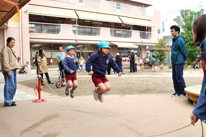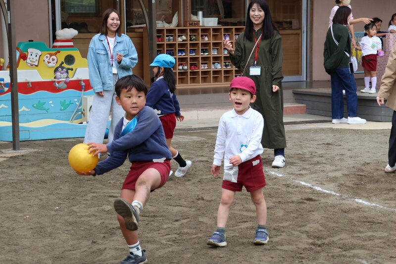 年中さんですと、まだなんとなく「幼児」感が漂いますが、年長さんになると大人と同等の感覚であそんでいるようにみえます。後半の「にじ組」さんは、途中で雨が降りはじめてしまい、残念ながら少しはやめに終了となりましたが、両クラスとも親子で楽しい時間をお過ごしになっていました。
