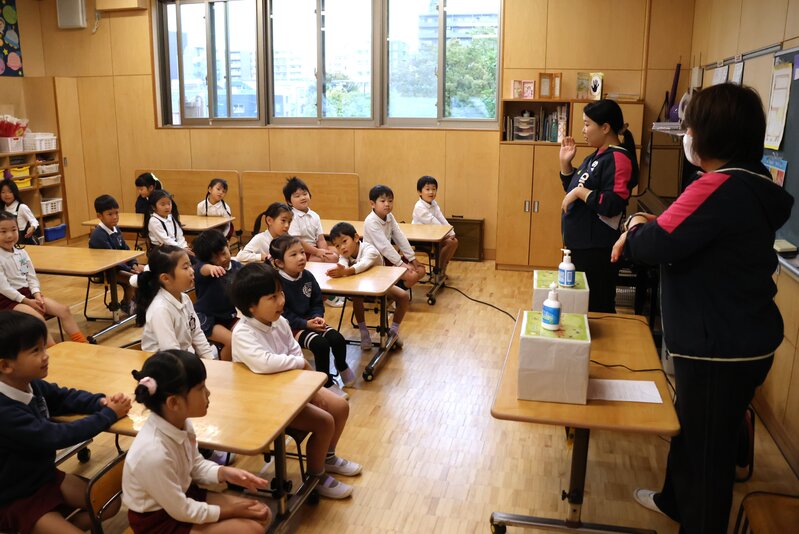 その感染症の予防には、やはり手洗いが一番。ということで、きのうから各クラスをキャラバンで回る「手洗いチェッカー隊」が、きょうは「つき組」さんを訪問していました。手順につきましては、きのうご紹介させていただきましたので、そちらを参照していただくとして、この「手洗いチェッカー」でわかった大切なことは、入念に洗うということ。洗いすぎる必要は無いと思いますが、丁寧に洗うことは大切かもしれません。「丁寧さ」を心掛けたいですね。