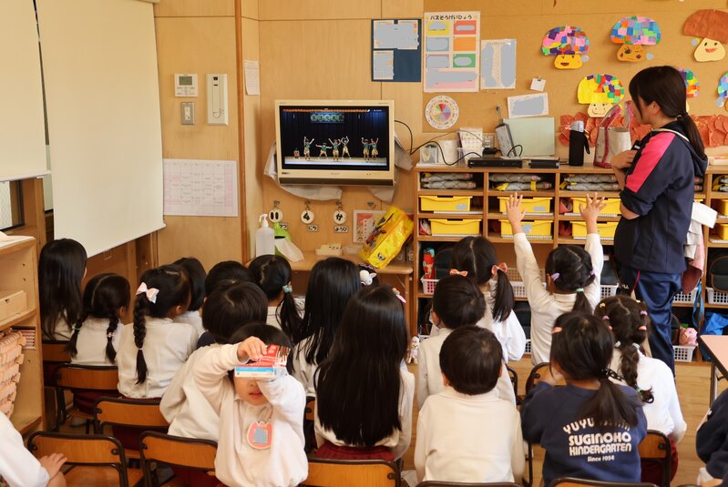 「ゆり組」さんは、「生活発表会」に向けて「ビデオ研修」を実施。しっかりイメージを固めてください。
