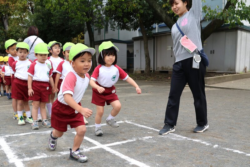 さて、きょうは水曜日なので年少さんの「体操指導」がありました。きょうは、スポーツテストの一環で「25m走のタイム測定」をしました。