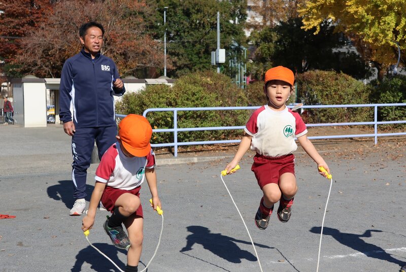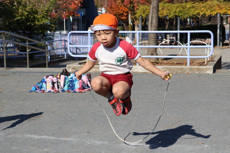 さて、きょうは金曜日。年中さんの「体操指導」の日です。きょうは戸部公園へと出張し、先週に続いて「なわとび」の練習をしました。