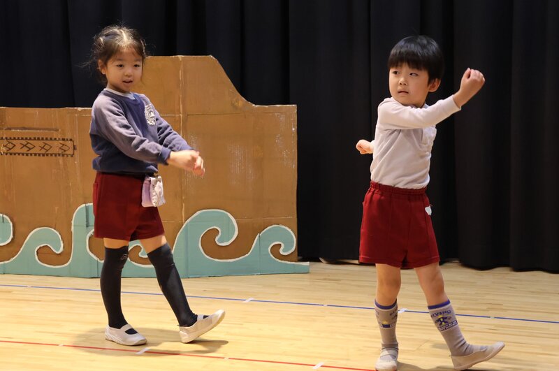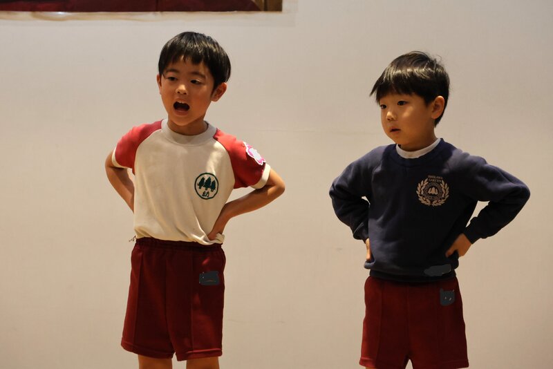 幕が上がっても、余裕な感じのお子さまたち。演技もからだ全体をつかって表現しています。