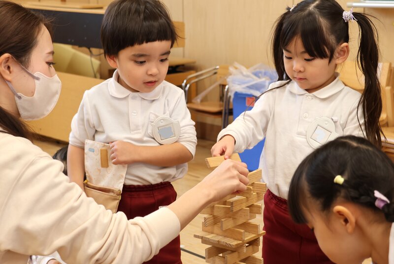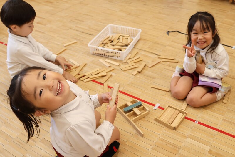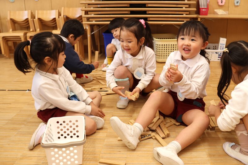 そんな中でも比較的にぎやかだったのが、「ゆり組」さんでした。先生に難易度の高い「折り紙」の製作をお願いしたり、ブロックあそびをしたり……。