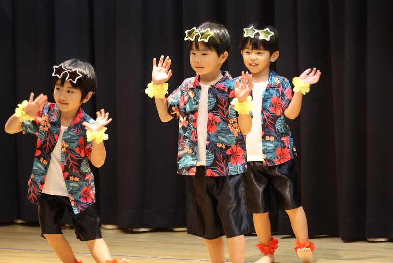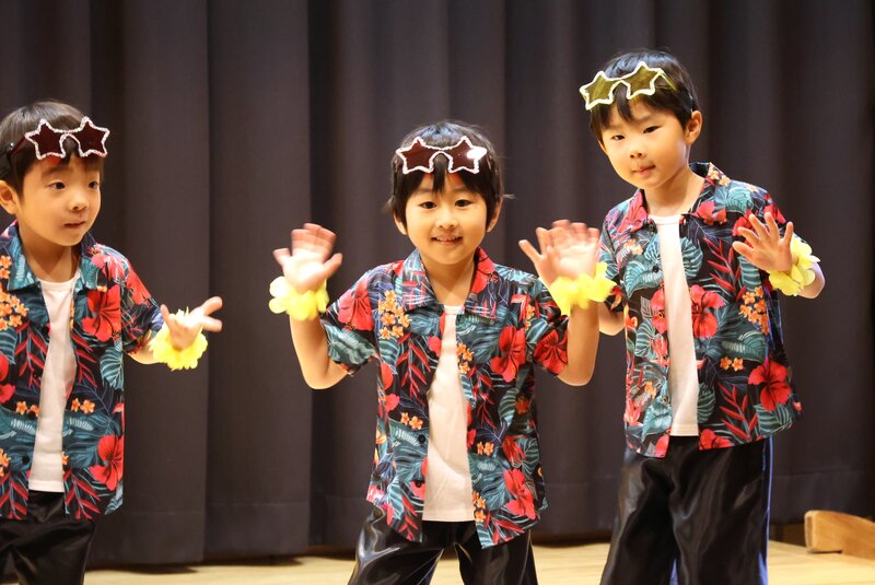 続いて登場したのは、年中の「ひまわり組」さんです。1曲目は、男子による「ギラギラサマー」。リハーサルのときには、「やっちゃいそうな感じ」のお子さまたちとしてご紹介をさせていただきました。