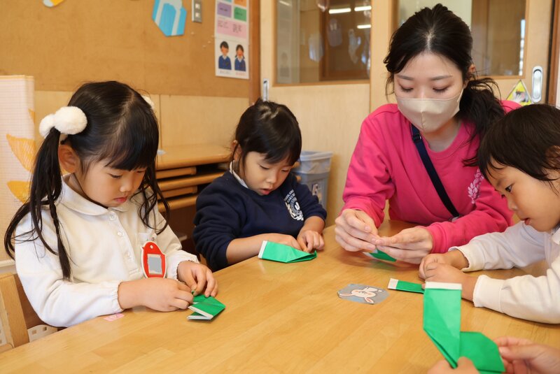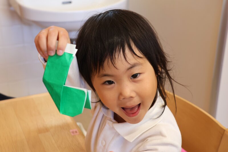 「うさぎ組」さんは、「お魚釣り」の準備をしていました。テーブルの上には、お子さまたちがつくった色とりどりのお魚さんが集まっています。来週は、このお魚たちが活躍しそうです。楽しみですね。
