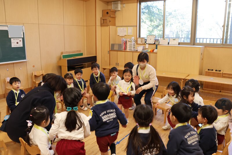 「ひよこ組」さんは、全員で「フルーツバスケット」。ルールの把握も、だいぶ進んだみたいです。