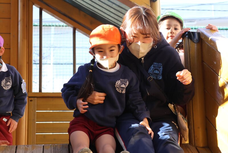 やっぱり、陽射しってありがたいですよね。そのあたたかな陽ざしが、先生とお子さまたちの笑顔を照らし出していました。一方、お部屋では……。