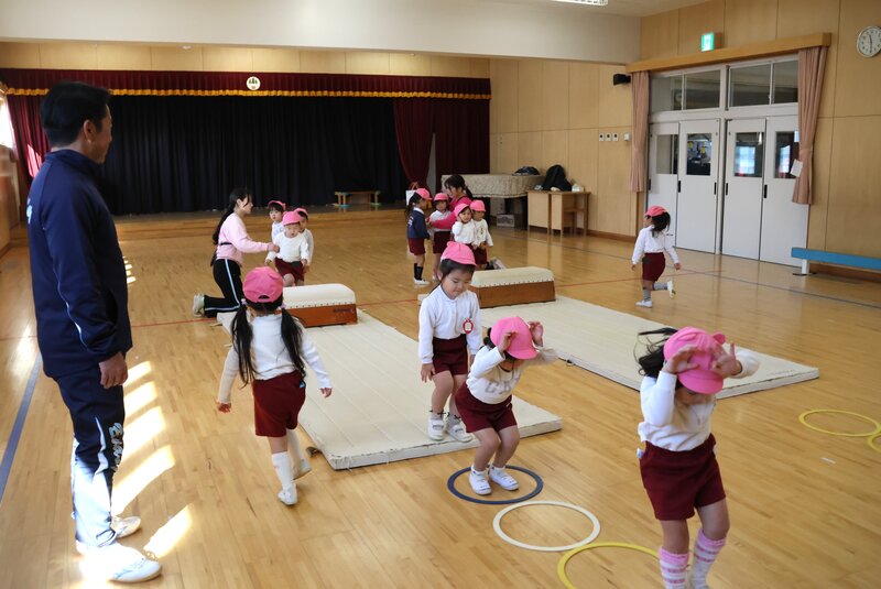 楽しいメニューで大いに盛り上がった年中さんの「体操指導」でした。