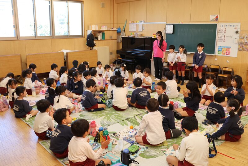 「ゆき組」さんと「りす組」さんは、「なかよしクラス」でなかよくランチ。きょうは、2学期最後の「お弁当」の日でしたから、お互いにきっと楽しいひとときになったことでしょう。