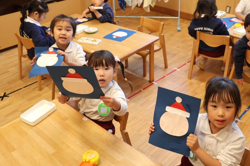 「クリスマス」といえば、こちらの「りす組」さんでも「サンタさん」をテーマにした製作が進行していました。