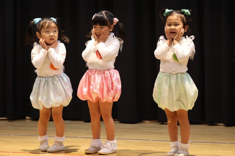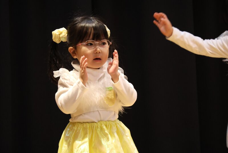 きのうで2学期が終わり、杉之子幼稚園は、きょうから「冬休み」に入りました。いつもですと、「冬休みキッズ」のようすなどをお伝えするところなのですが、きょうの午前中は外部で研修があり、不在にしておりました関係でお子さまたちのようすがよくわかりません。そんなこともあって、きょうは「冬休みキッズ」のようすではなく、先日おこなわれました「生活発表会」の未発表写真をご紹介させていただきたいと思います。その第1弾は、「くま組」さんと「りす組」さん。どちらも、「生活発表会」の初日に登場した年少さんのクラスです。