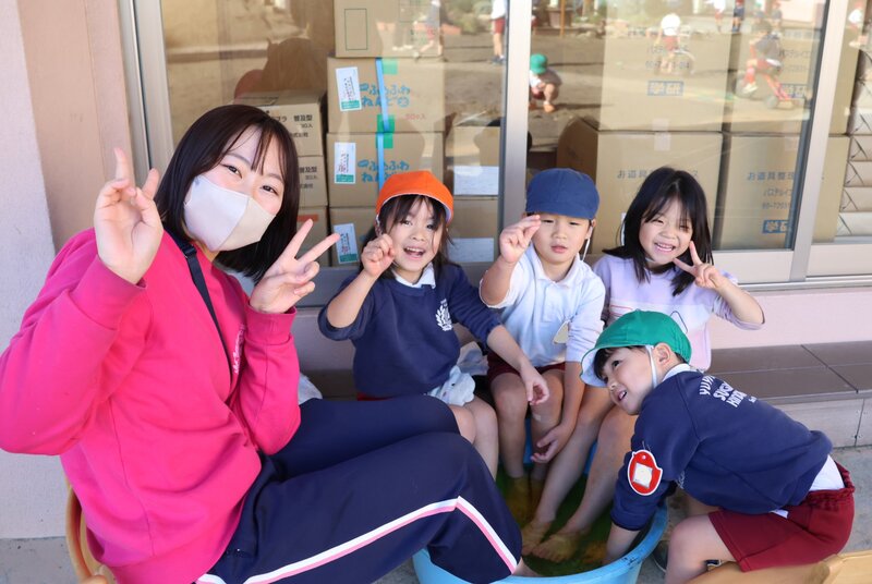 きょうは、久しぶりに陽ざしがたっぷり。まぶしいくらいです。思いっきりからだを動かすお子さまたちもいれば……、