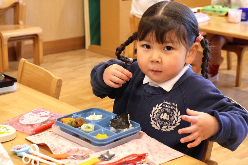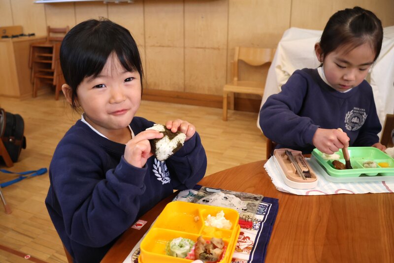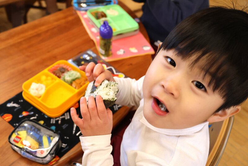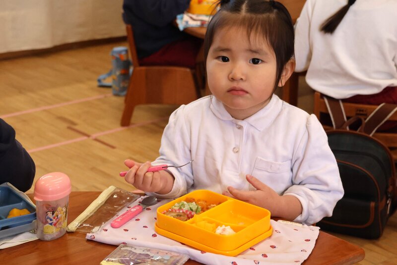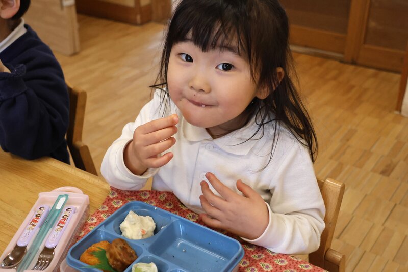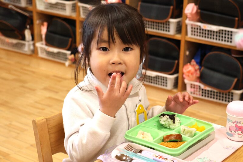 「つき組」さんは、はじめてのお部屋でしたが、みんな緊張したようすもなく、ふつうにモリモリ食べていましたね。さすがは「いちご組」さん。頼もしいです。