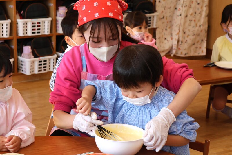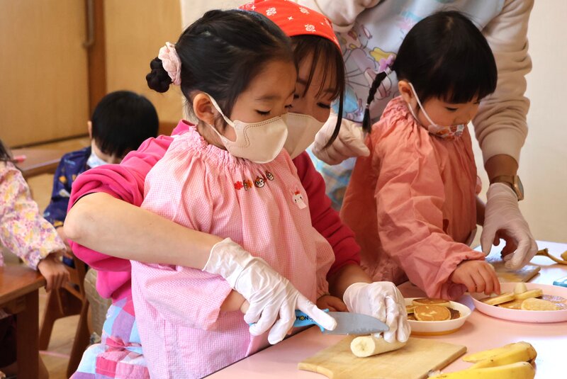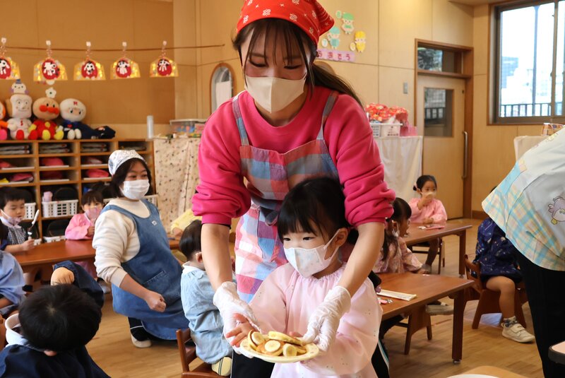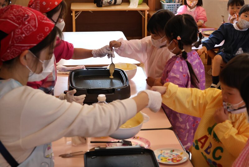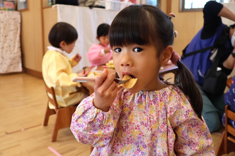 というわけで、きょうは「いちご組」さんと年中「ひまわり組」さんの「つくってたべよう」のもようをお伝えしました。
