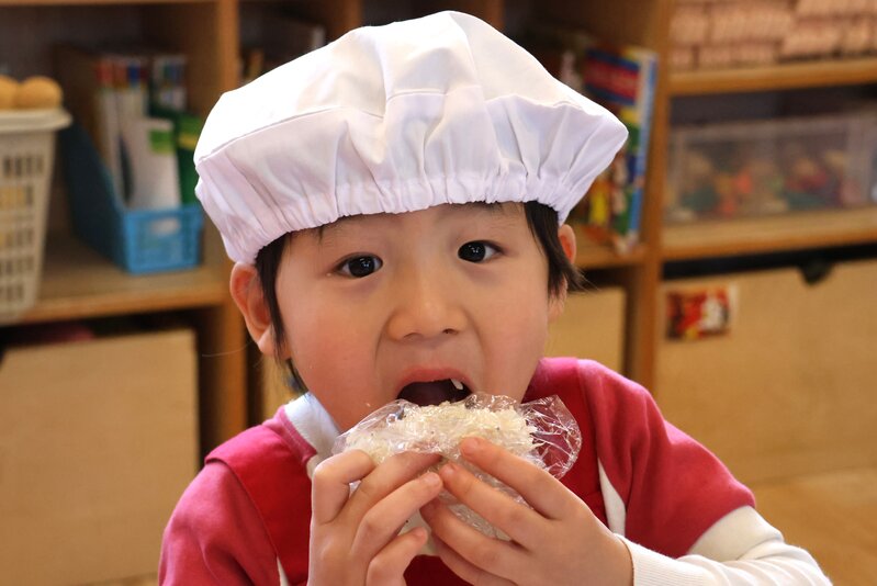 こうして「おにぎり」ができあがったら、待望の「いただきます」です。