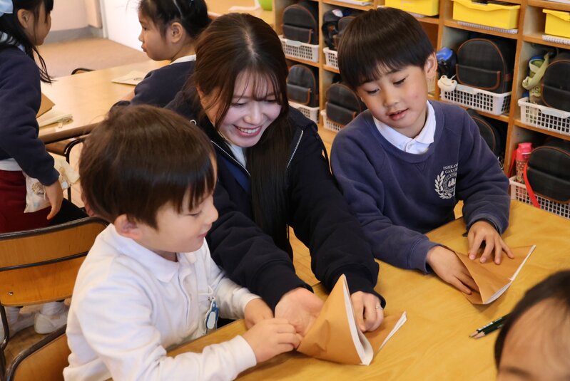 「おさんぽう」は、工程がちょっと複雑なので、先生がヘルプしながら進めていました。