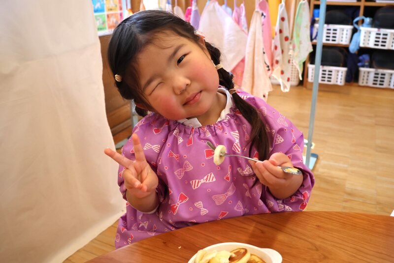 「パンケーキ」なんて、かわいらしさ粒ぞろいの「いちご組」さんには、何ともピッタリのテーマではありませんか。