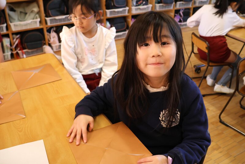 年長さんは、「おさんぽう」づくりにチャレンジ。3クラスが、足並みをそろえての製作です。