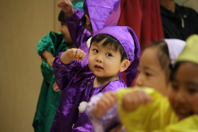 ステージで自分の役割をしっかりと演じる子どもたち。そこには、主役も脇役もありません。あるのは、クラスの「なかま」という一体感だけです。 みんなが胸を張り、自信にあふれ、輝いていました。年長さんらしさ満点です。
