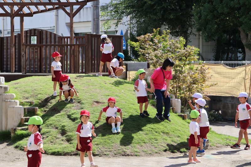 この陽気を待ちわびていたかのようにお子さまたちが園庭に出てきて、秋の風を感じながらお友だちや先生との楽しい時間を過ごしていました。