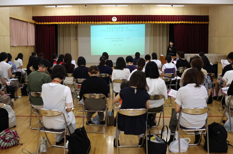 さて、きょうはタイトルにもありますように今年度3回目となる「親学塾」を開催しました。講師としてお招きしたのは、臨床発達心理士の鈴木敦子先生です。鈴木先生は、て神奈川県私立幼稚園連合会において相談員として多くの子育て相談に対応してきた経験をお持ちです。ですから、きょうのご講演では、近年多く寄せられる相談内容を基に、それぞれのケースについて具体例を交えながら解決のヒントをお話ししてくださいました。