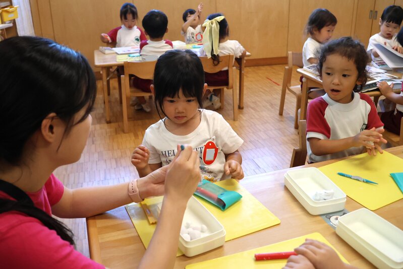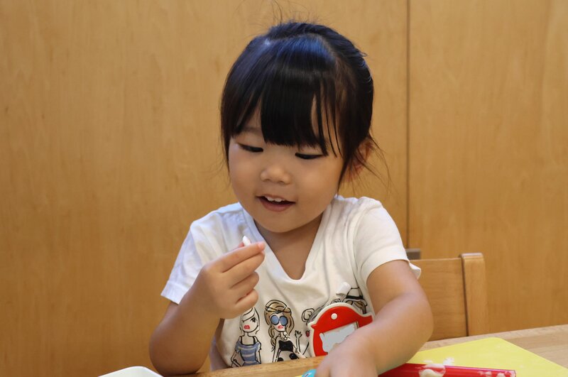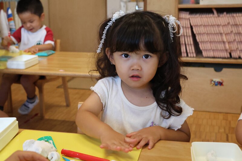 では、ここからは学年ごとに「きょうのすぎのこ」をみてまいりましょう。こちらは、年少の「りす組」さん。きょうは、粘土やお絵かきで「フリータイム」を楽しんでいました。