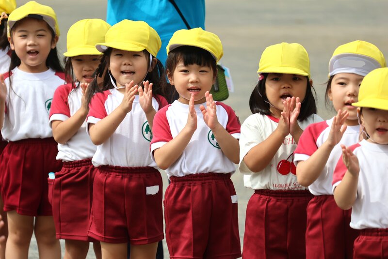 年中さんに続いて会場にやって来たのは、年少さんのお子さまたち。その先陣を切って入場したのは、「いちご組」さんでした。