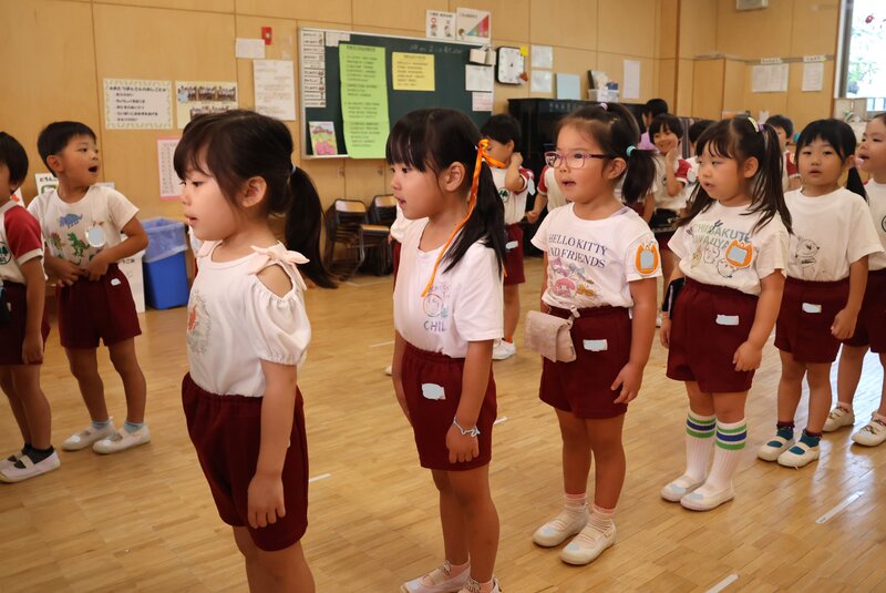 「うさぎ組」さんのお隣の「ひまわり組」さんからは、歌声が聴こえていました。きれいに整列して歌っているのは、園歌「すぎのこのなかまたち」。「すぎりんぴっく」当日も、すてきな歌声を披露してくれることでしょう。