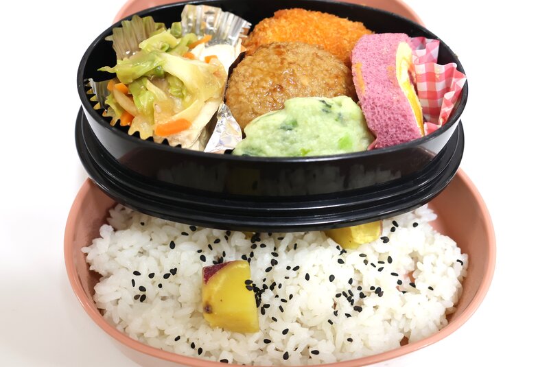 というわけで、きょうの給食はこちらです。きょうは、木曜日ですのでスペシャル・メニューの「2段弁当」でした。