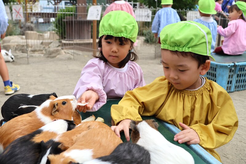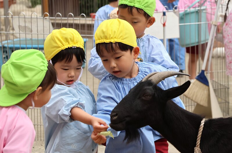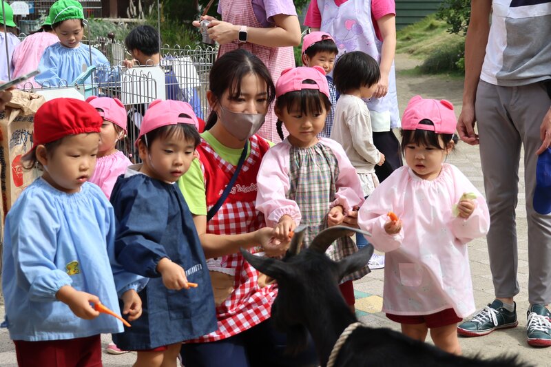 それは、ヤギさんやヒツジさんへのごはんのあげ方、モルモットくんやうさぎさんの抱っこ仕方などです。「ヤギさんにニンジンをあげるとき、真ん中あたりを持ってヤギさんのお口に近づけると、指もガブってされちゃうよ」とか……、