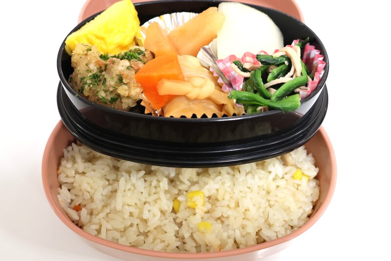 というわけで、きょうの給食はこちらです。きょうは、木曜日ですのでスペシャル・メニューの「2段弁当」でした。
