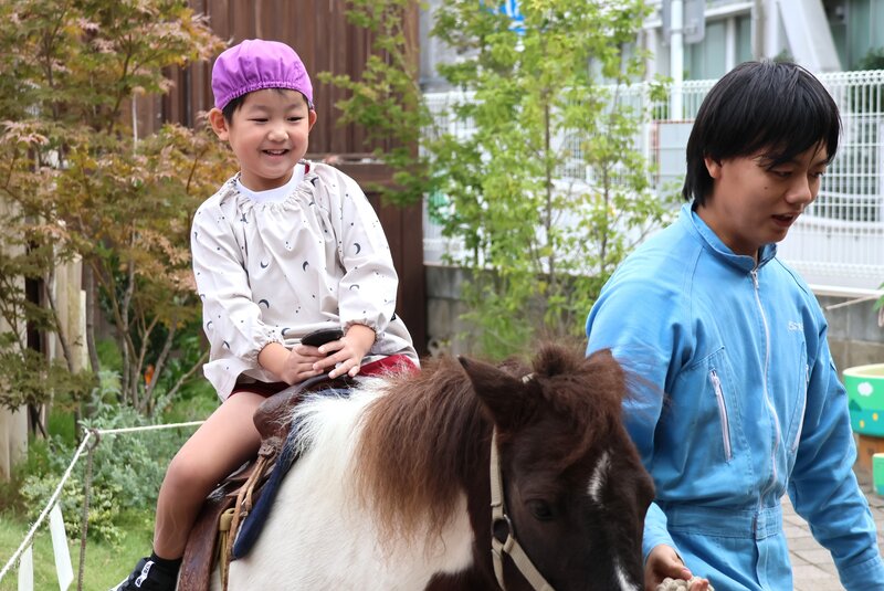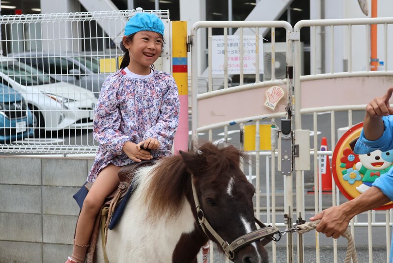 もうひとつ忘れてはならないのが、年長さん用の「特設ゾーン」です。ここでは、年長さんだけが「ポニー」くんに乗ることができます。年少さんと年中さんには、うらやましいゾーンです。