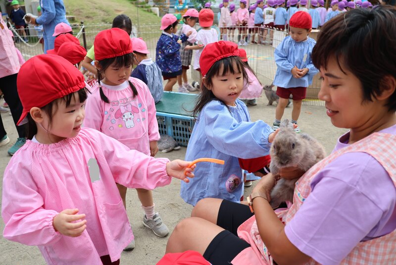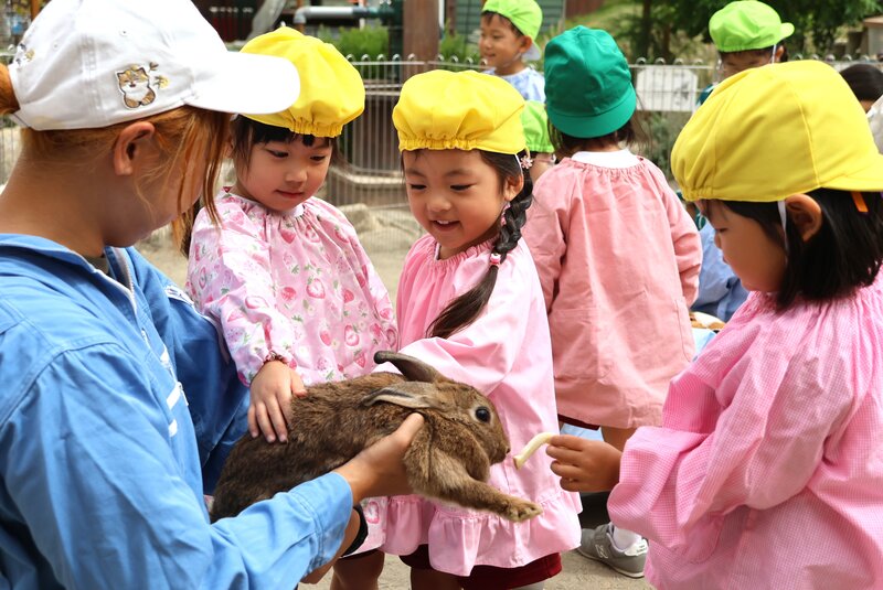 動物さんと触れ合い、そして先生たちとも触れ合うことができました。園庭は、あたたかでほのぼのとした空気でいっぱい。