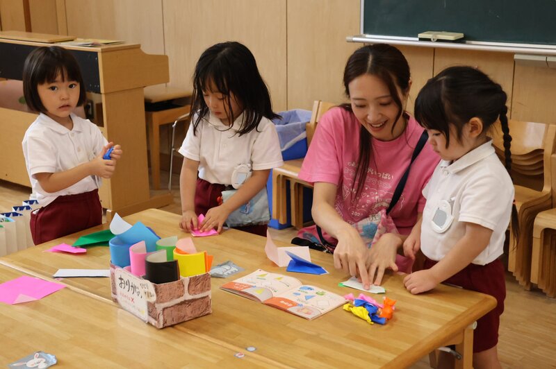 お部屋をみにいきますと、「うさぎ組」さんは折り紙をしたり……、