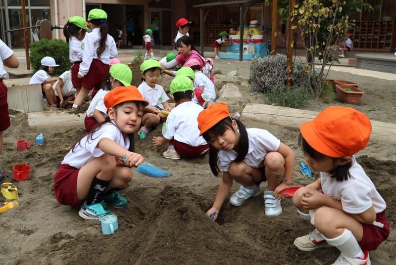 これからは、暑さでなかなか園庭あそびができなかった分を、しっかりと取り戻すくらい元気に園庭あそびを楽しんでください。