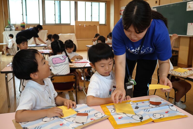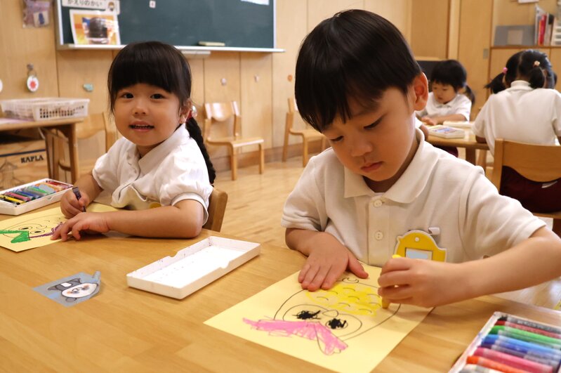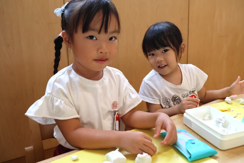 きょうの「製作」では、「折り紙」のほかに「粘土」や「クレヨン」を使ったクラスもありました。