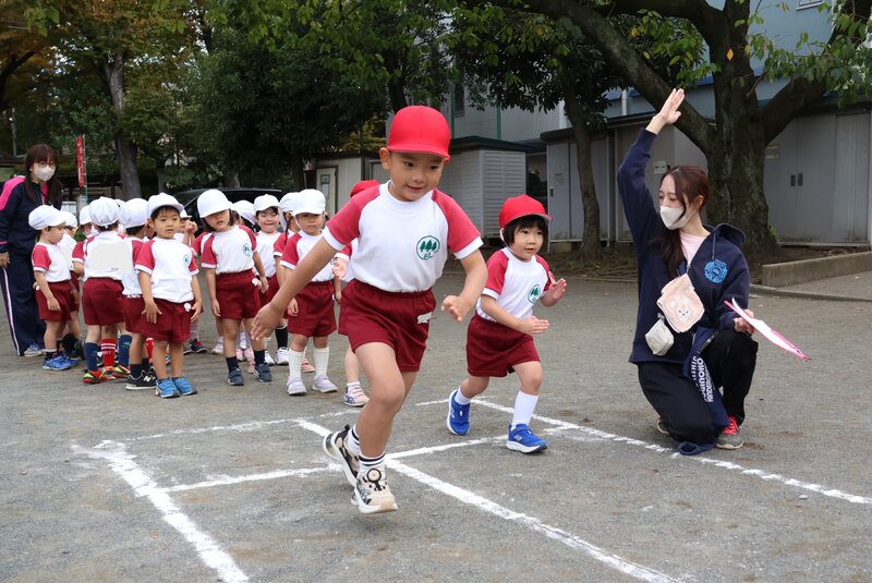 さて、きょうは水曜日なので年少さんの「体操指導」がありました。きょうは、スポーツテストの一環で「25m走のタイム測定」をしました。