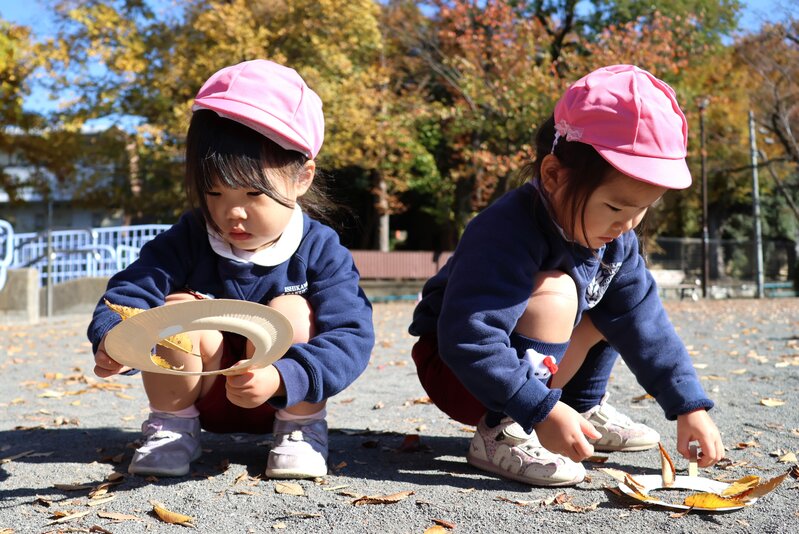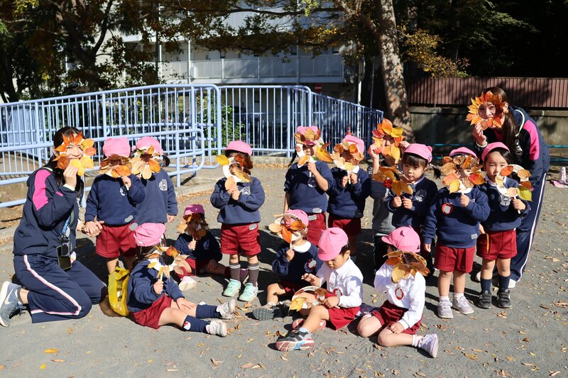 そして、ここからは「いちご組」さんをご紹介させていただきます。きょうの「いちご組」さんは、お隣の戸部公園へとお散歩にでかけました。いまの戸部公園は、樹々が色づいて秋の装いの真っただ中。そこにお出かけしたからには、何かしらの理由があるはず……。