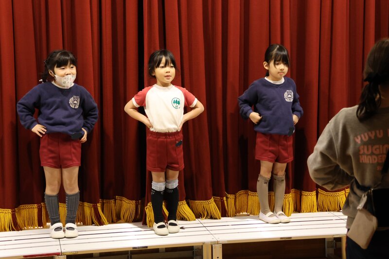 そして、ここからはリハーサルを目前に控えた年長さんのホール練習のようすをちょっとだけお伝えしたいと思います。ちなみに、写真の順番はクラスごとではありません。バラバラに配置していますので、ご了承ください。